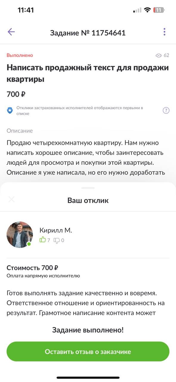 Когда Кирилл только создал аккаунт на YouDo, у него не было рейтинга, отзывов и выполненных заданий. В этот период он сосредоточился не на заработке, а на получении рейтинга.