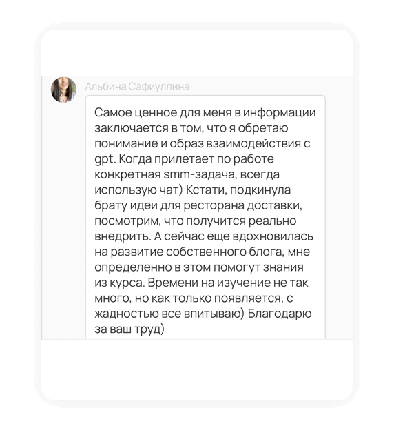 Научитесь решать любые задачи, связанные с написанием текстов: доклады, отчеты, заключения, скрипты для поддержки и продаж, поздравления друзьям и коллегам. Тексты любой сложности, в любом стиле и на любом языке!