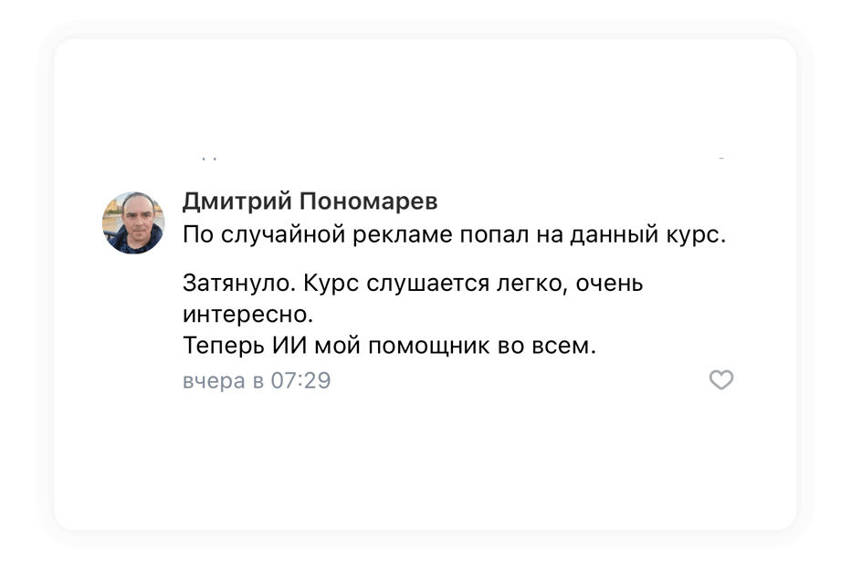 Разберетесь в основах работы нейросетей, узнаете об их возможностях и ограничениях.